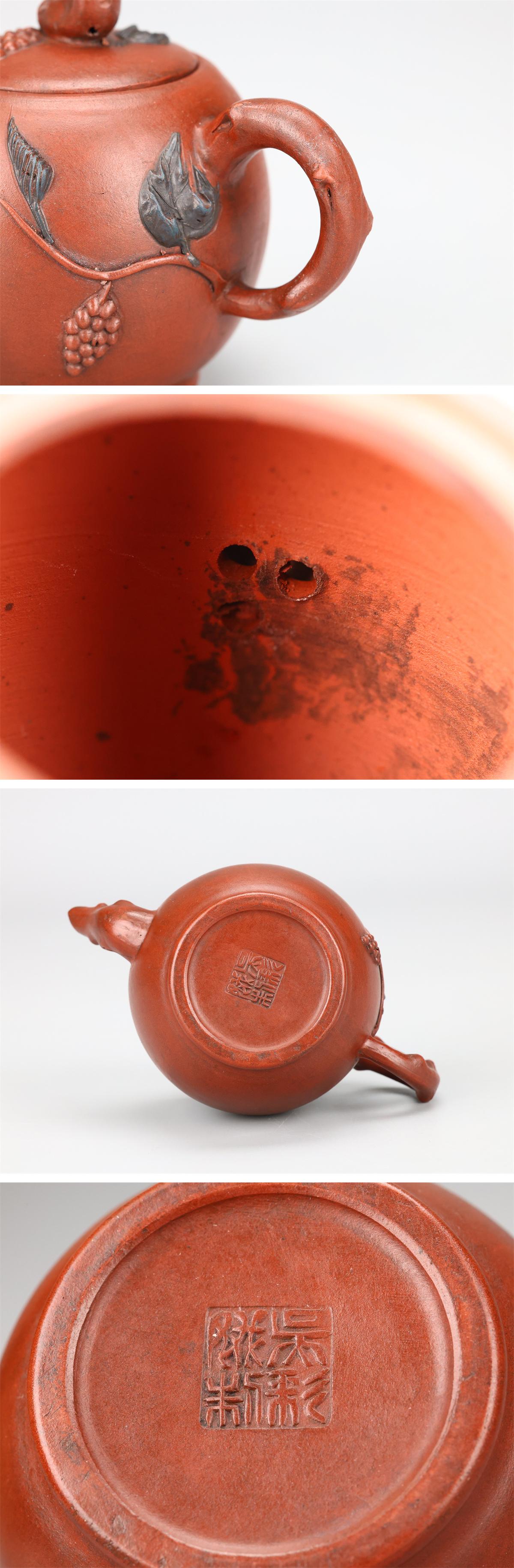 【吉】CO224 唐物 【宜興紫砂】 朱泥 葡萄紋 急須/美品!拍卖