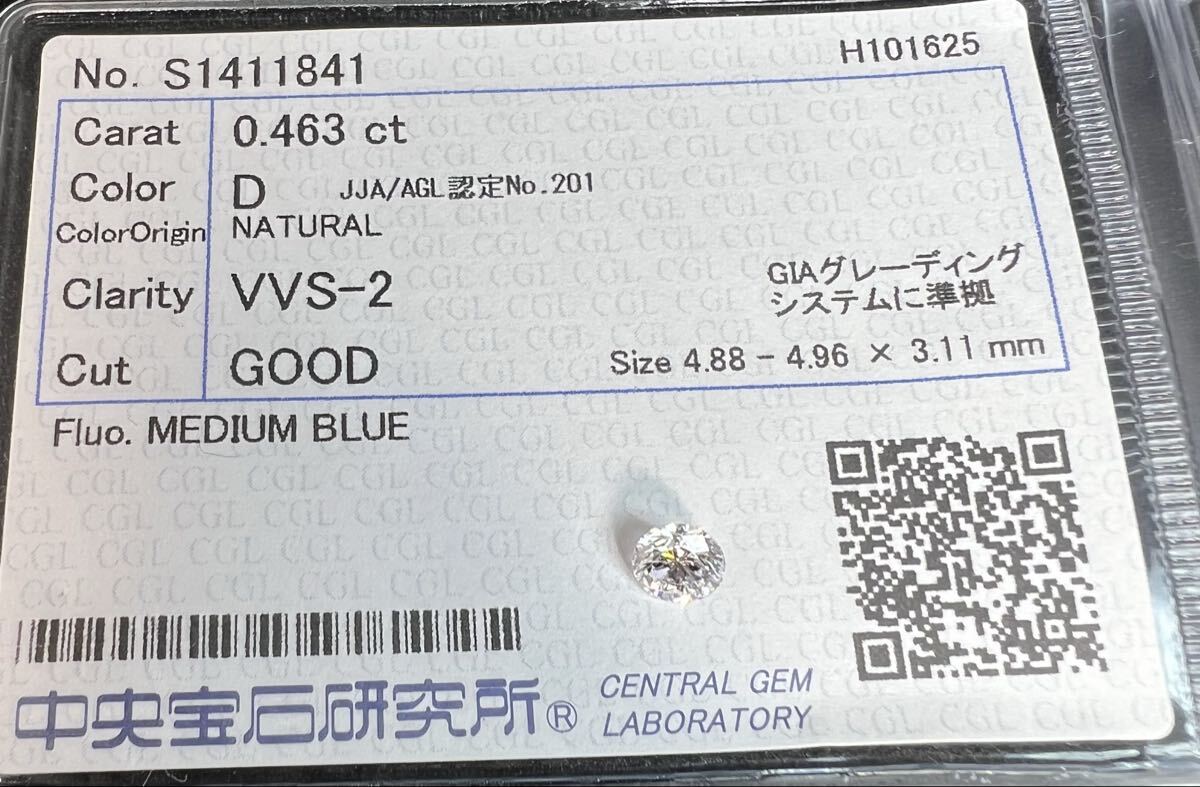- 1円 ダイヤモンド ルース 0.463ct D VVS-2 Good EG2491