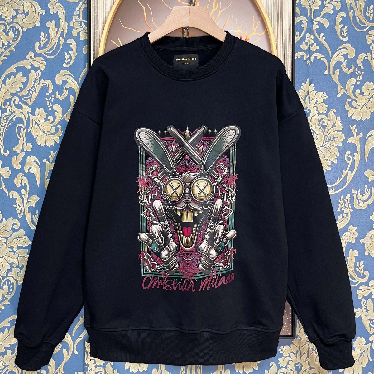 > 定価4万★christian milada・ミラノ発・トレーナー★コットン100% 通気 快適 保温 ラビット カジュアル スウェット ストリート 春秋 L
