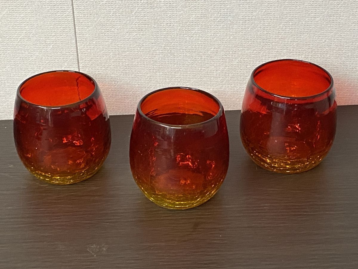- OKI048-60 琉球ガラス グラス コップ 3個セット 赤