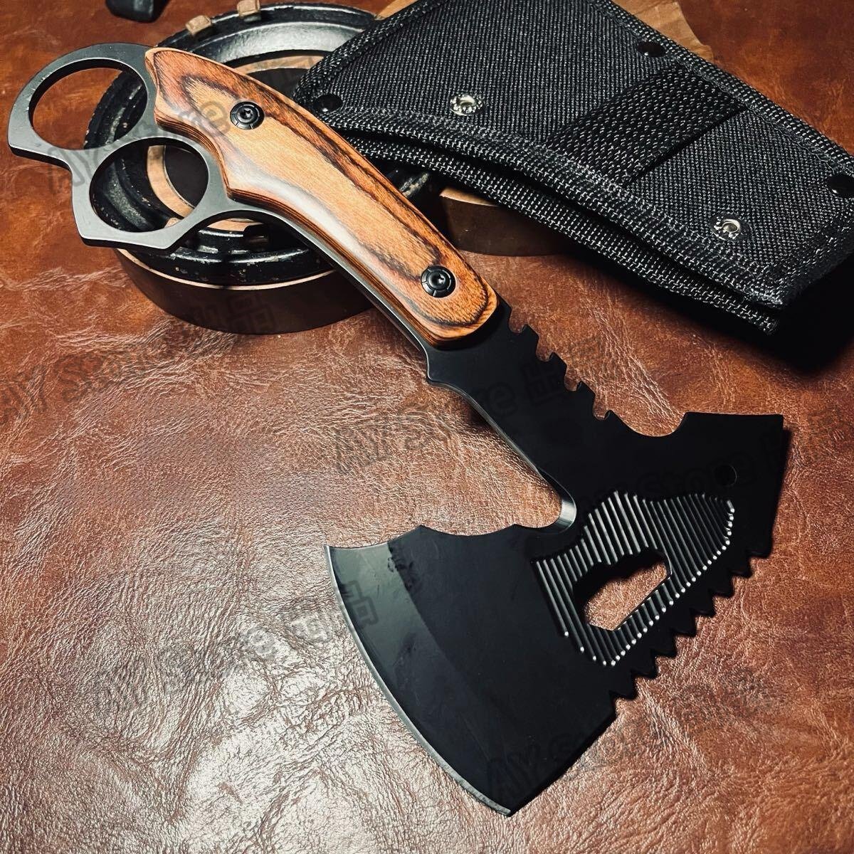 - アウトドア用 薪割り手斧 鋼製 焚き火斧 木製柄 21cm キャンプ 野外登山 サバイバルbhw0372