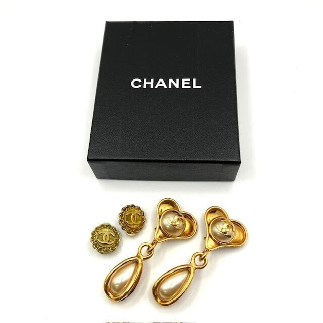 - 仙17【2点】CHANEL シャネル ココマーク イヤリング ゴールドカラー 95P まとめ売り ハート フェイクパール ラウンド ヴィンテージ 箱付