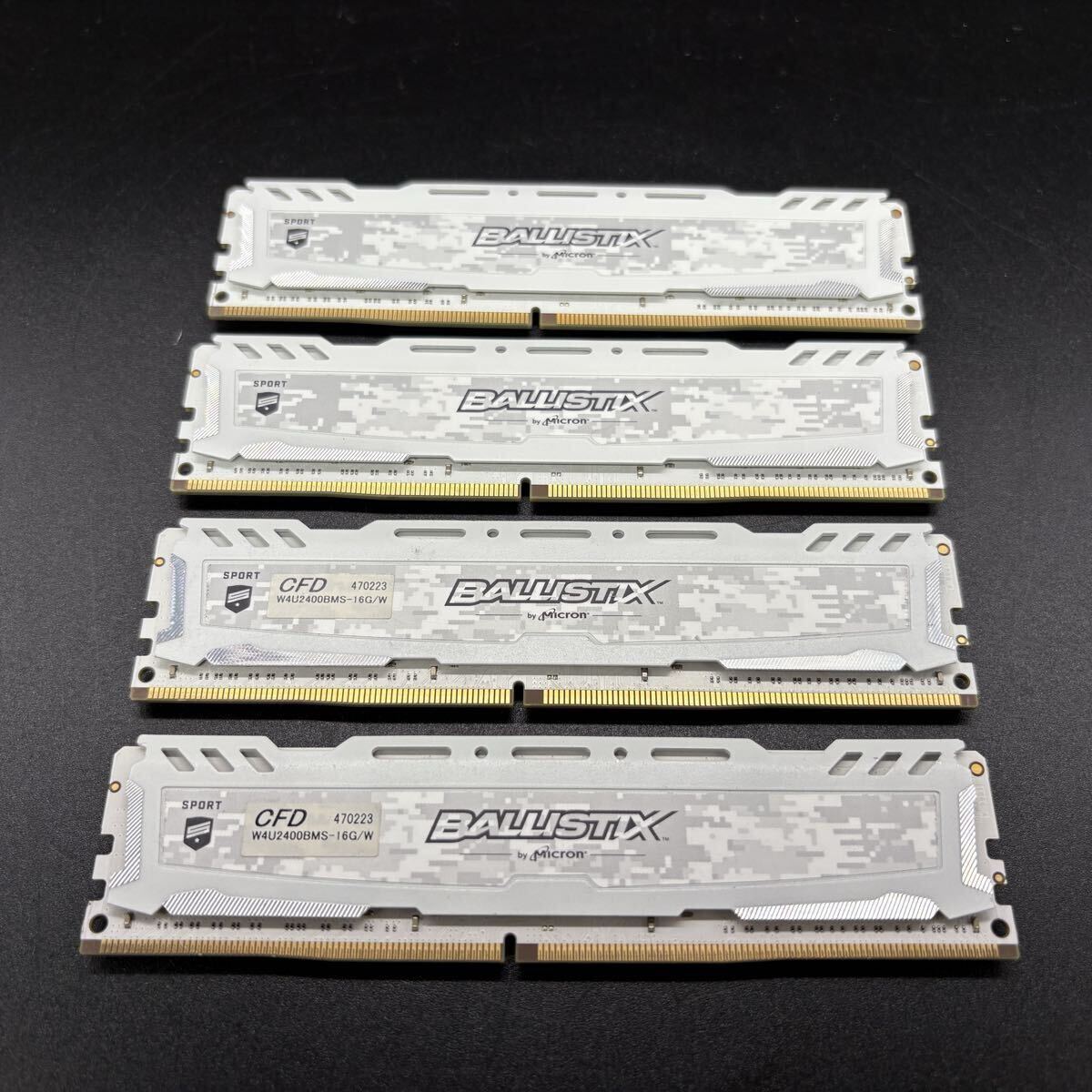 - 【1円】【送料無料】 Crucial DDR4-2400 DIMM デスクトップ用 64GB(16GB×4枚) BALLISTIX ホワイトメモリ