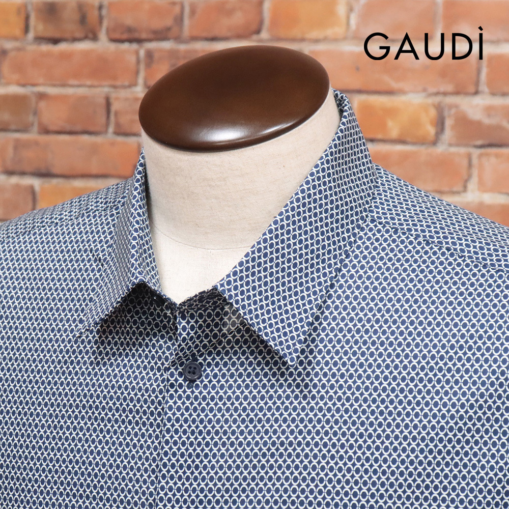 - 1円/GAUDI/Lサイズ/長袖シャツ C521GU45008 オーバル柄 小紋 プリント 綿100% 今季 ガウディ 新品/紺/ネイビー/mc305/