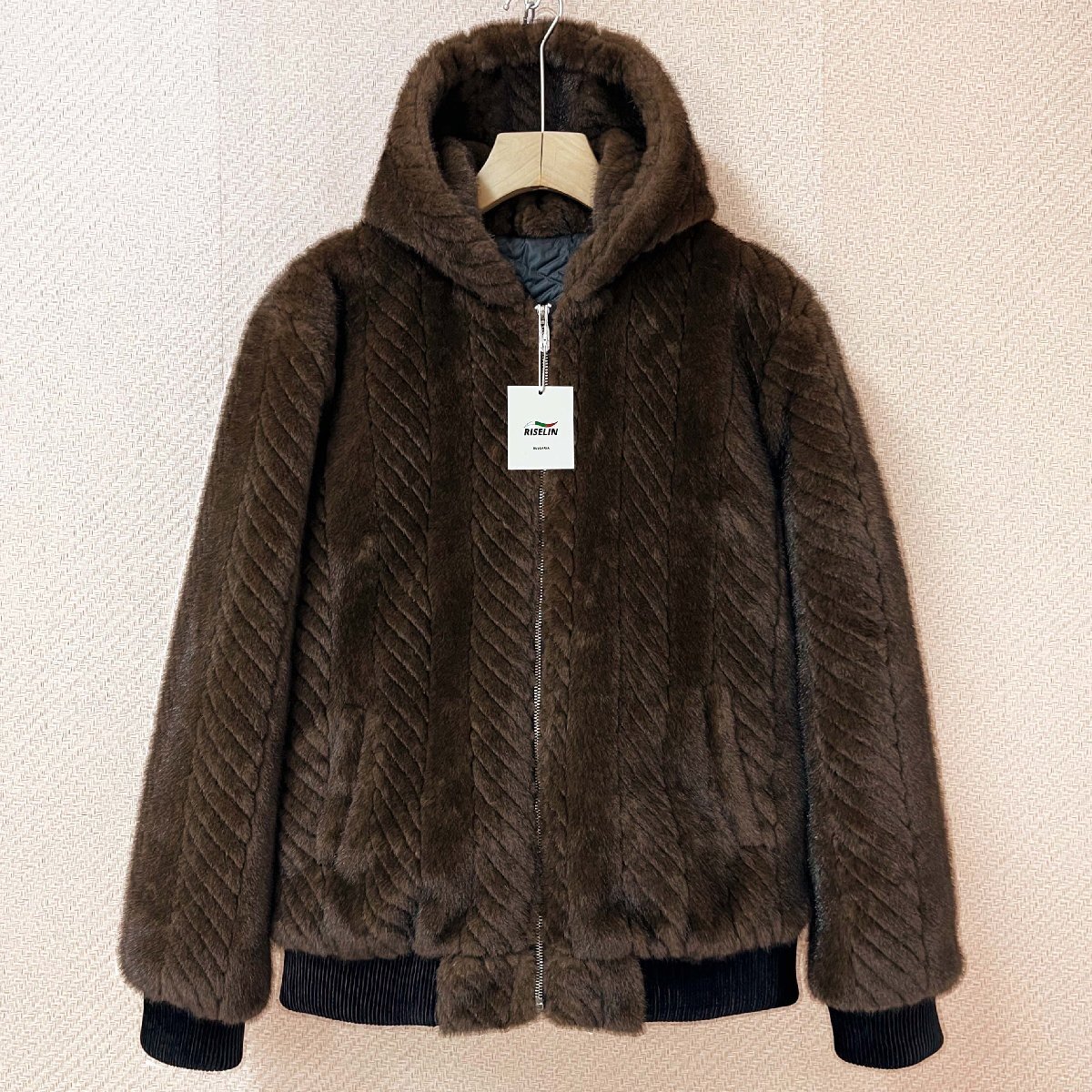 - ヨーロッパ製※定価8万◆ブルガリア発※RISELIN ファーコート ミンク混 ふわふわ フード付き 毛皮ジャケット アウター カジュアル 冬 M/46
