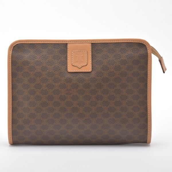- 1円~ 極美品 CELINE セリーヌ マカダム柄 クラッチバッグ ポーチ PVC ブラウン ブラゾン バニティ セカンドバッグ 鞄 /070101-56/0