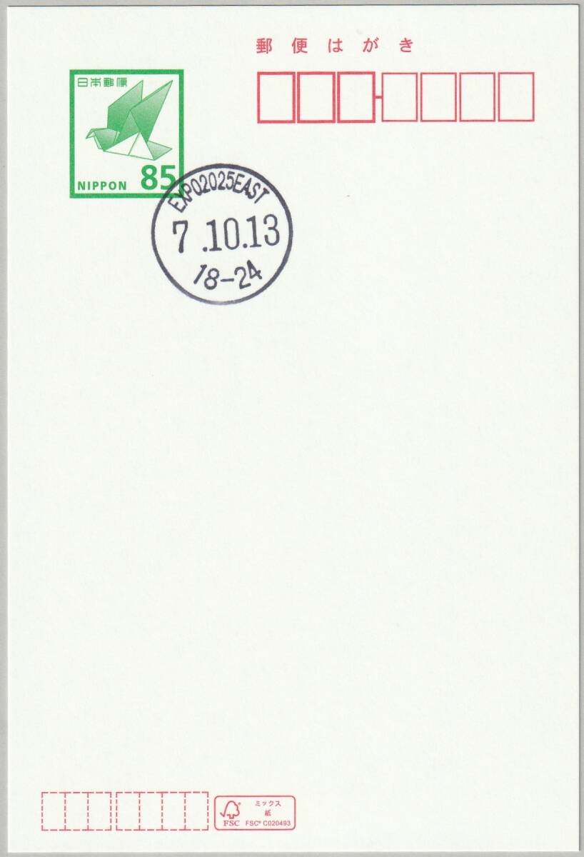 - 2025年 日本国際博覧会(2025大阪・関西万博)を記録するはがき◆EXPO2025 EAST郵便局/万博閉幕日・和文印押(18-24時)/令和7年10月13日