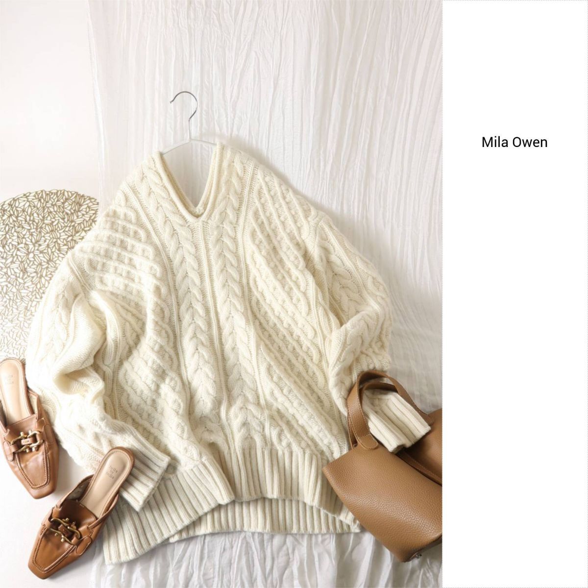 > ミラオーウェン Mila Owen☆Vネック ケーブルニットプルオーバー 0サイズ☆E-M 6310