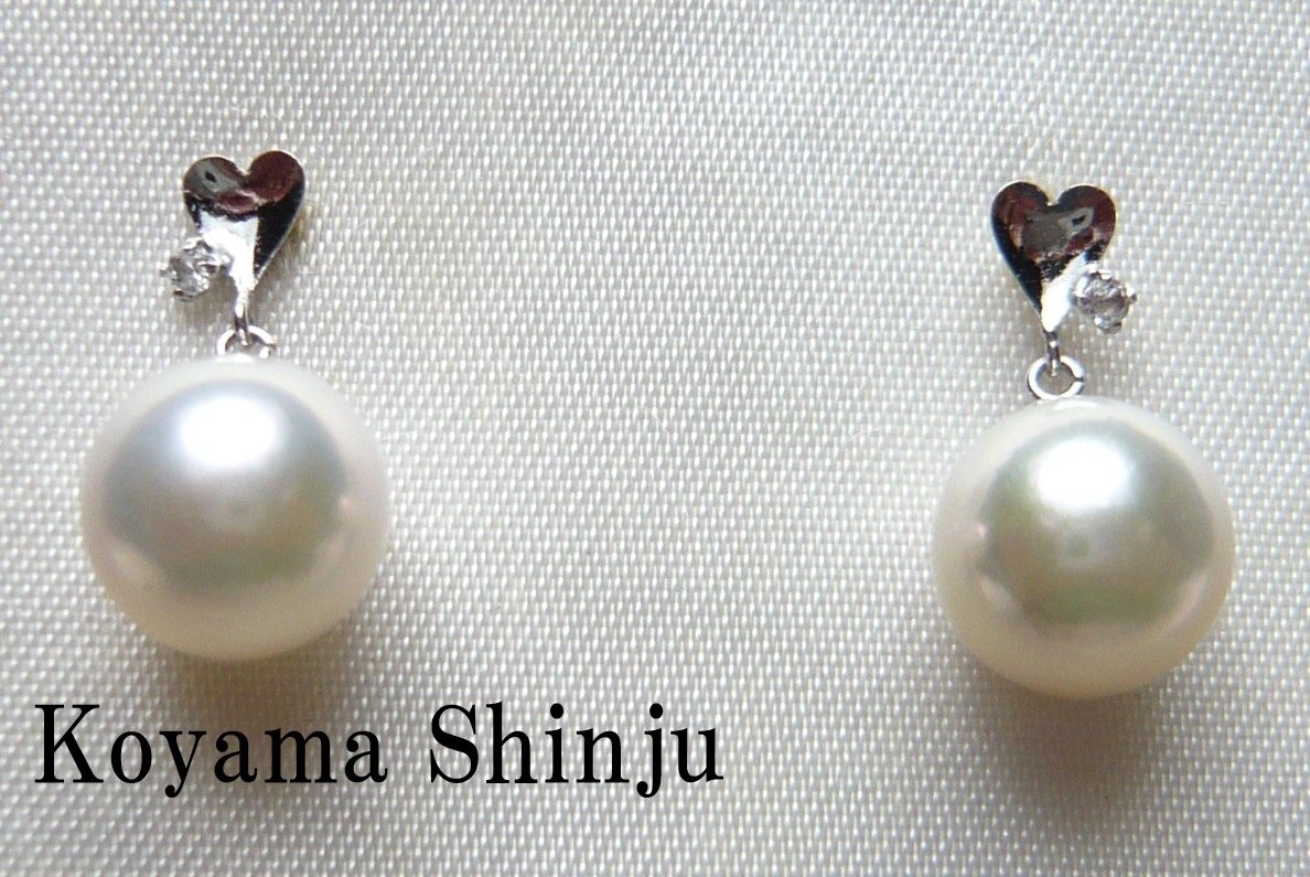 新入荷!可愛いハート♪デザイン!絶品カラー!あこや本真珠/WG半輝石パールピアス