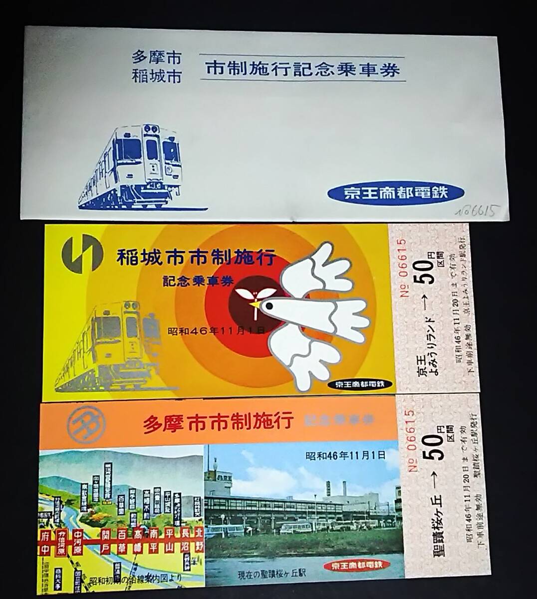 - 【記念きっぷ(乗車券)】 京王帝都電鉄『多摩市/稲城市市制施行記念』2枚セット (S46.11.1)