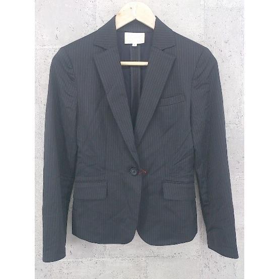 > ◇ NATURAL BEAUTY ナチュラルビューティー ストライプ 1B 長袖 テーラード ジャケット 36 ブラック レディース