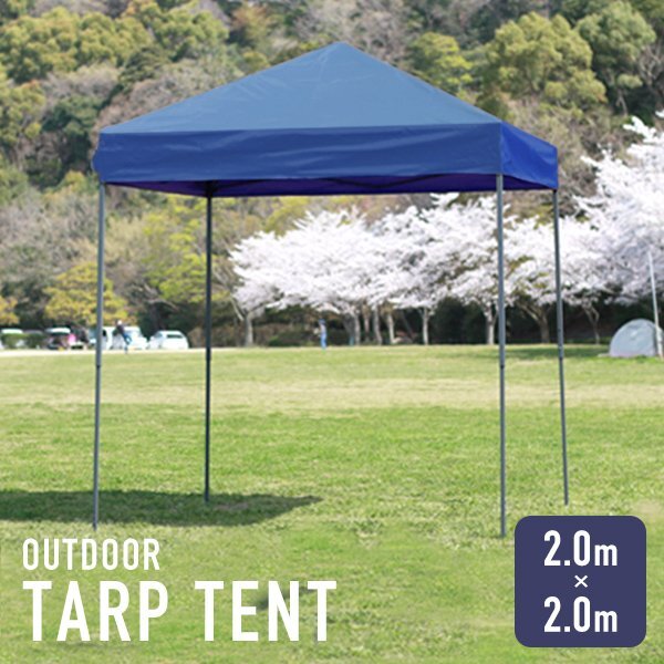 > 新品 タープテント 2m 収納ケース付き 軽量 ワンタッチスチールフレーム 簡単組立 UVカット キャンプ アウトドア イベント 庭 BBQ 青
