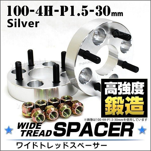 > Durax ワイドトレッドスペーサー 30mm 100-4H-P1.5 ナット付 銀 8D トヨタ 三菱 ホンダ マツダダイハツ 2枚セット ホイールスペーサー