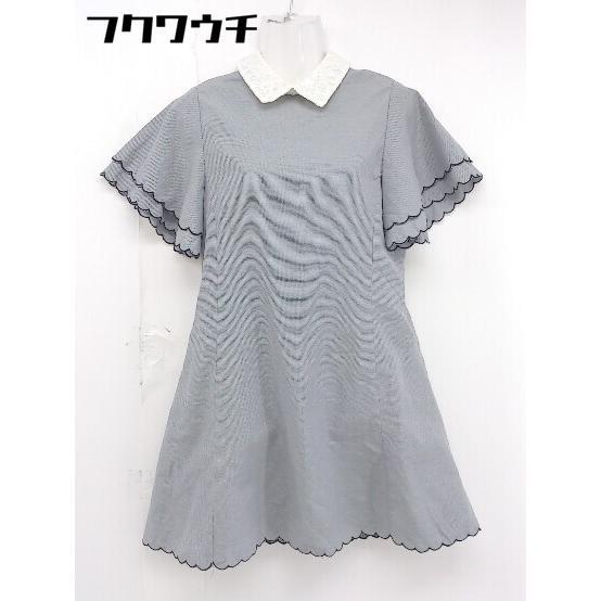 > ◇ one after another NICE CLAUP 総柄 スカラップ 半袖 ミニ ワンピース サイズF ブラック系 レディース