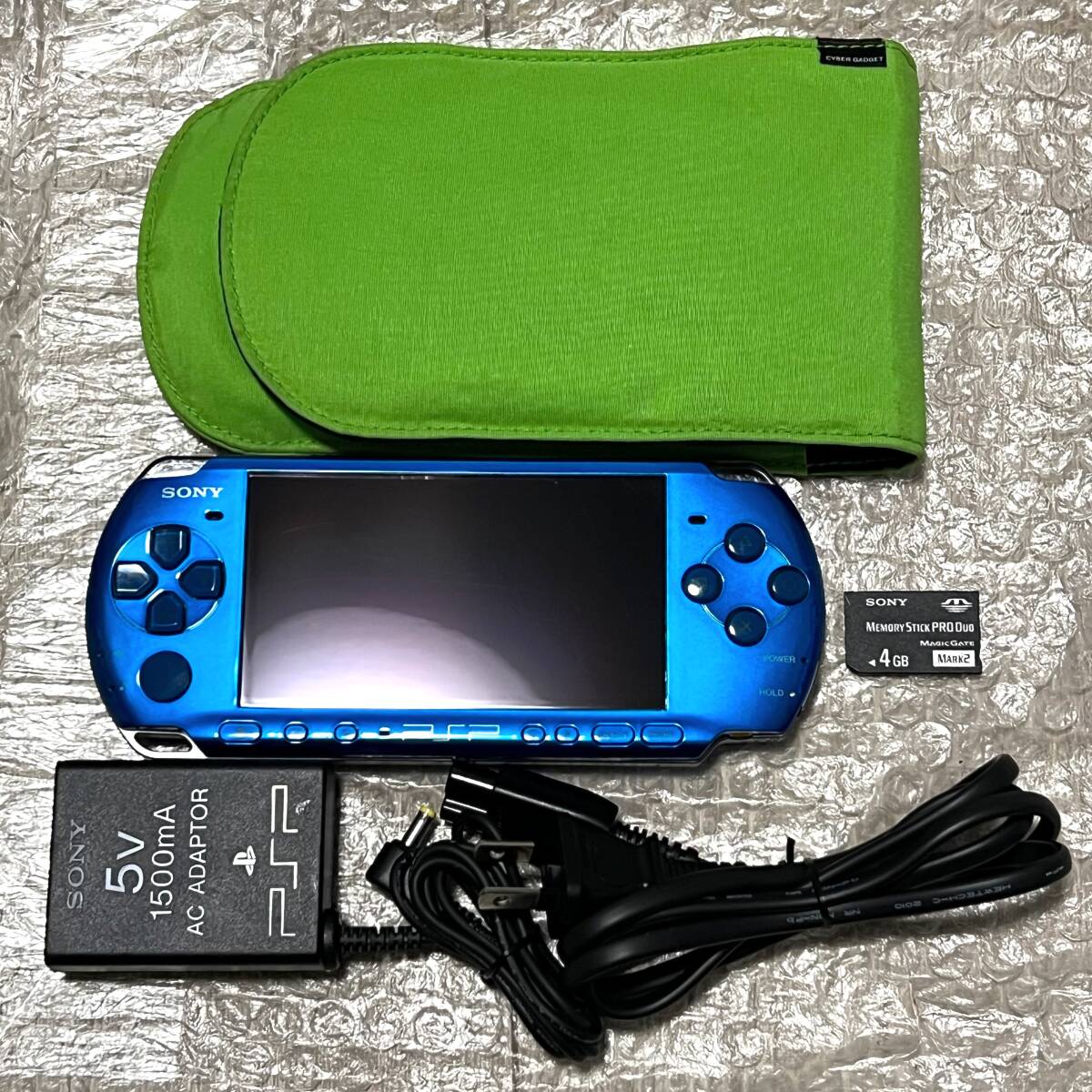 > 〈準美品・動作確認済み・最終型〉PSP-3000 本体 バイブラントブルー +メモリースティック 4GB ポーチ 充電器 PlayStation Portable 薄型