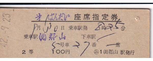 - 鉄道切符 硬券 第1ばんだい 座席指定券(2等) 郡山から