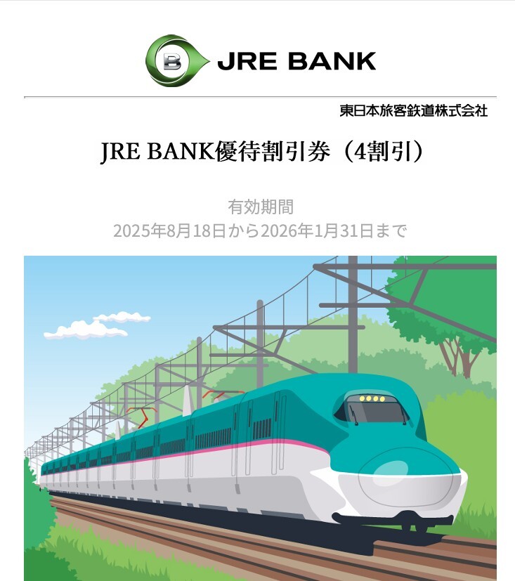 - ★★★JRE BANK優待割引券(4割引)4枚セット 【有効期間 2026年1月31日まで】★★★