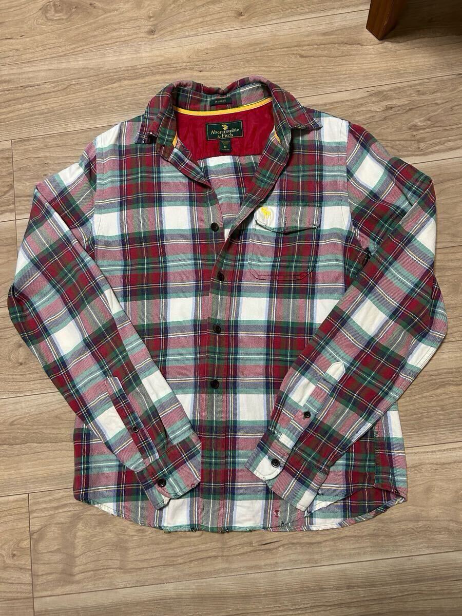 > 【Abercrombie&Fitch】アバクロンビー&フィッチ アバクロ ダメージ加工 長袖シャツ ワッペン刺繍 ビンテージ サイズM