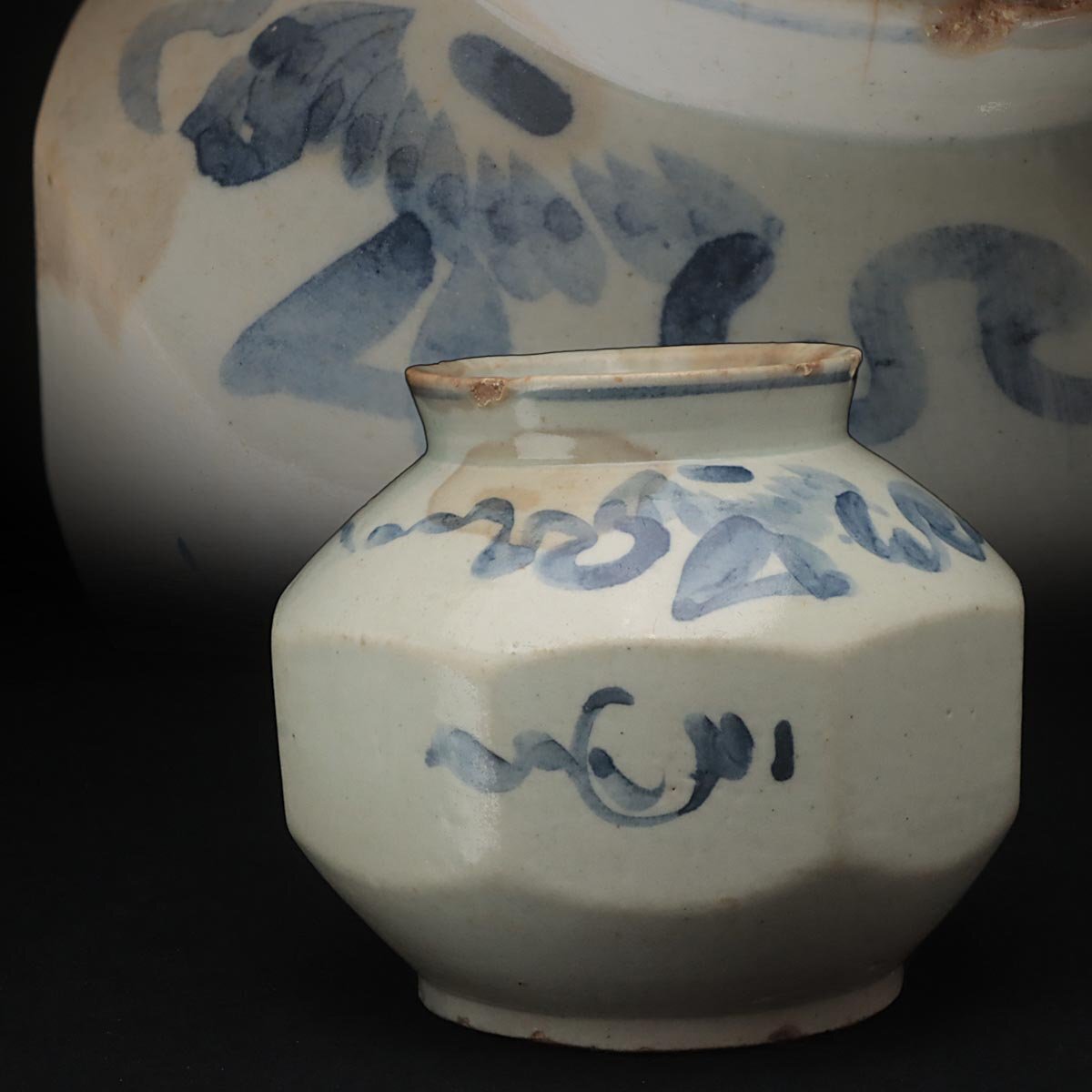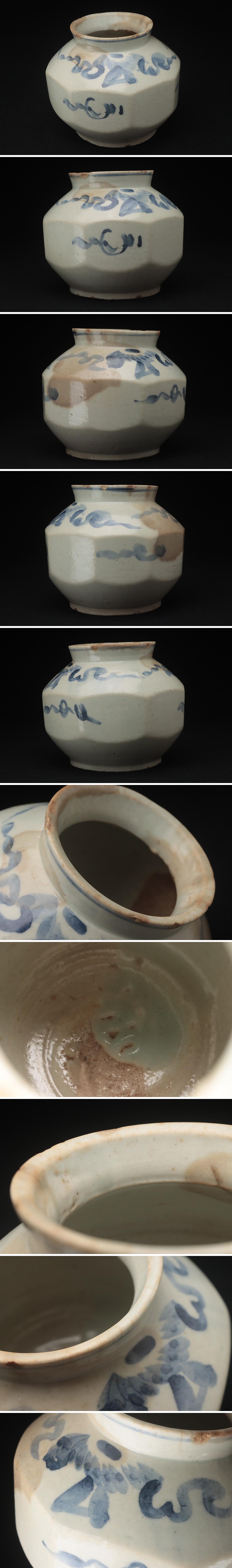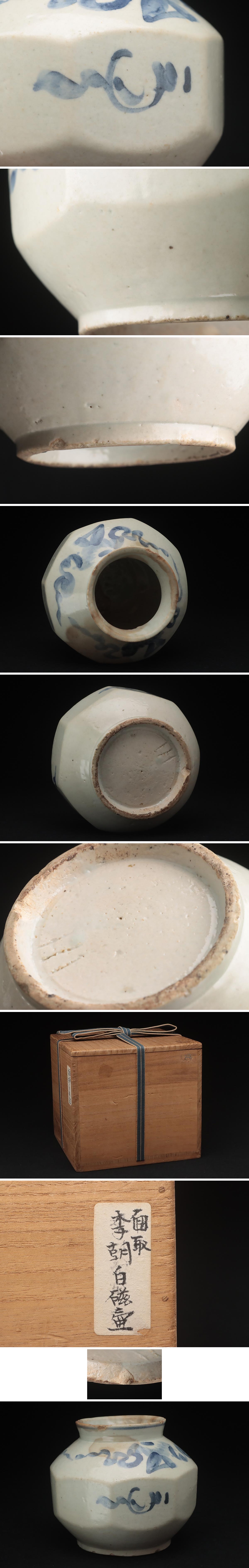 - FD946 朝鮮美術 李朝 白磁 染付 草花文 面取壺 高12cm 木箱附・李朝面取壷・青花壺 朝鮮古陶 朝鮮古美術 李朝陶磁 旧蔵