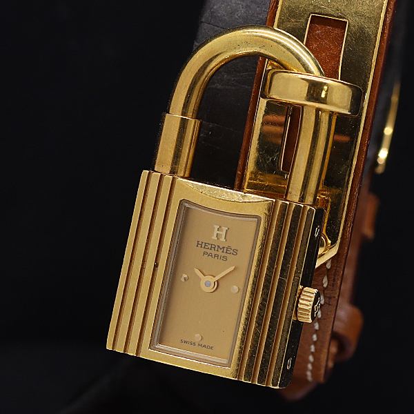 > 1円 エルメス KE1.201 ケリーウォッチ 972758QZ ゴールド文字盤 レディース腕時計 0432300 12BGT MST