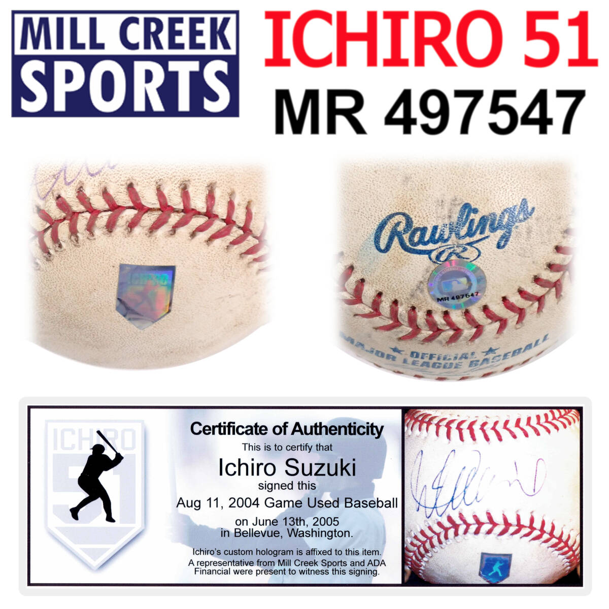 - 公式 試合ボール イチロー マリナーズ 51 2004年8月11日 ツインズ戦 本人直筆サイン入り ミルクリーク証明書