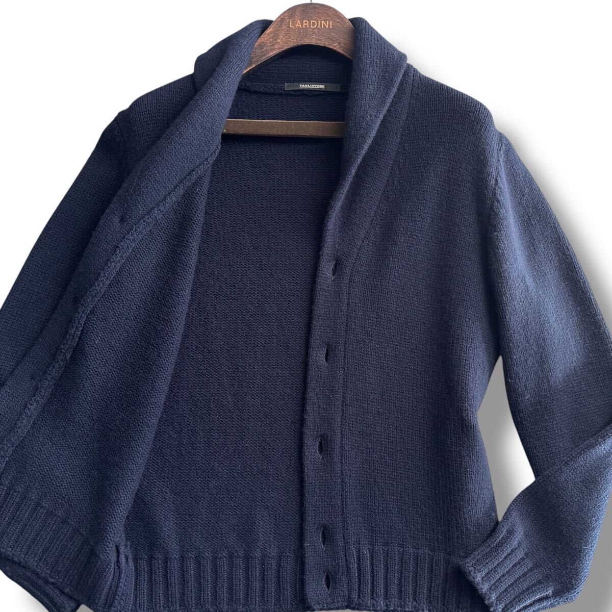 > 極美品■TAGLIATORE タリアトーレ【46/M相当】バージンウール ニット ショールカラー カーディガン ネイビー MADE IN ITALY イタリア製