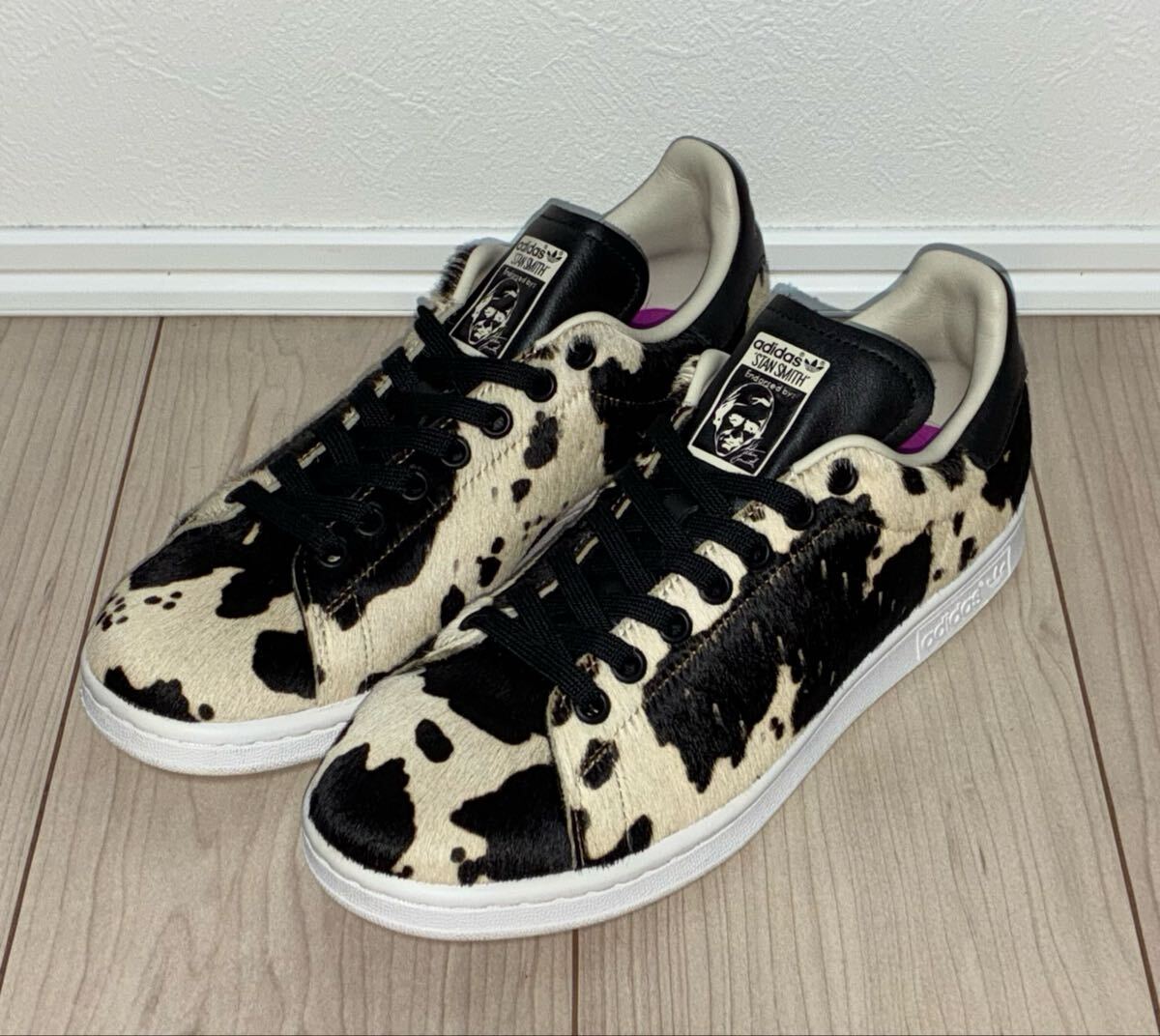 - 良品 adidas STAN SMITH W FV3087 24.5cm アディダス オリジナルス スタンスミス ブラック ブラウン ホワイト 黒 茶 白 カウ柄 牛柄 ハラコ