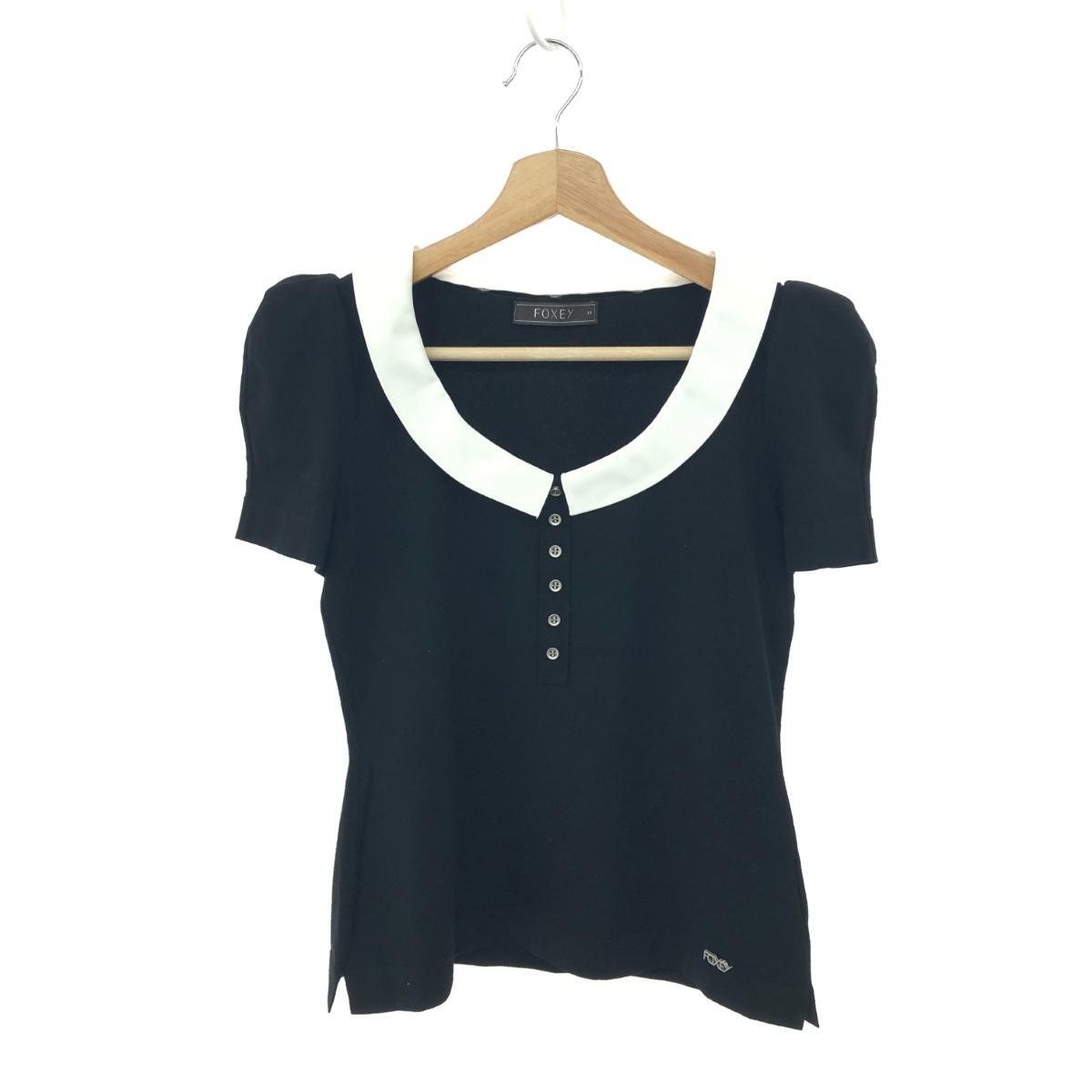 > 良好◆FOXEY NEW YORK フォクシーニューヨーク 半袖カットソー サイズ:38 襟取り外し可能/ロゴプレート ブラック レディース