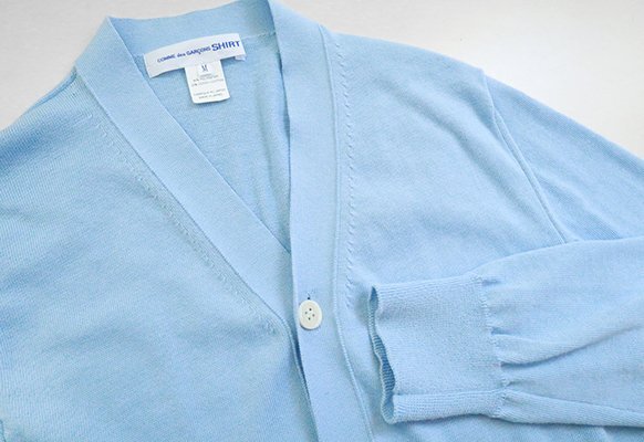 > COMME des GARCONS SHIRT ◆ハイゲージ Vネック カーディガン Mサイズ 清潔感 サックスブルー コムデギャルソン シャツ ◆ZZ4