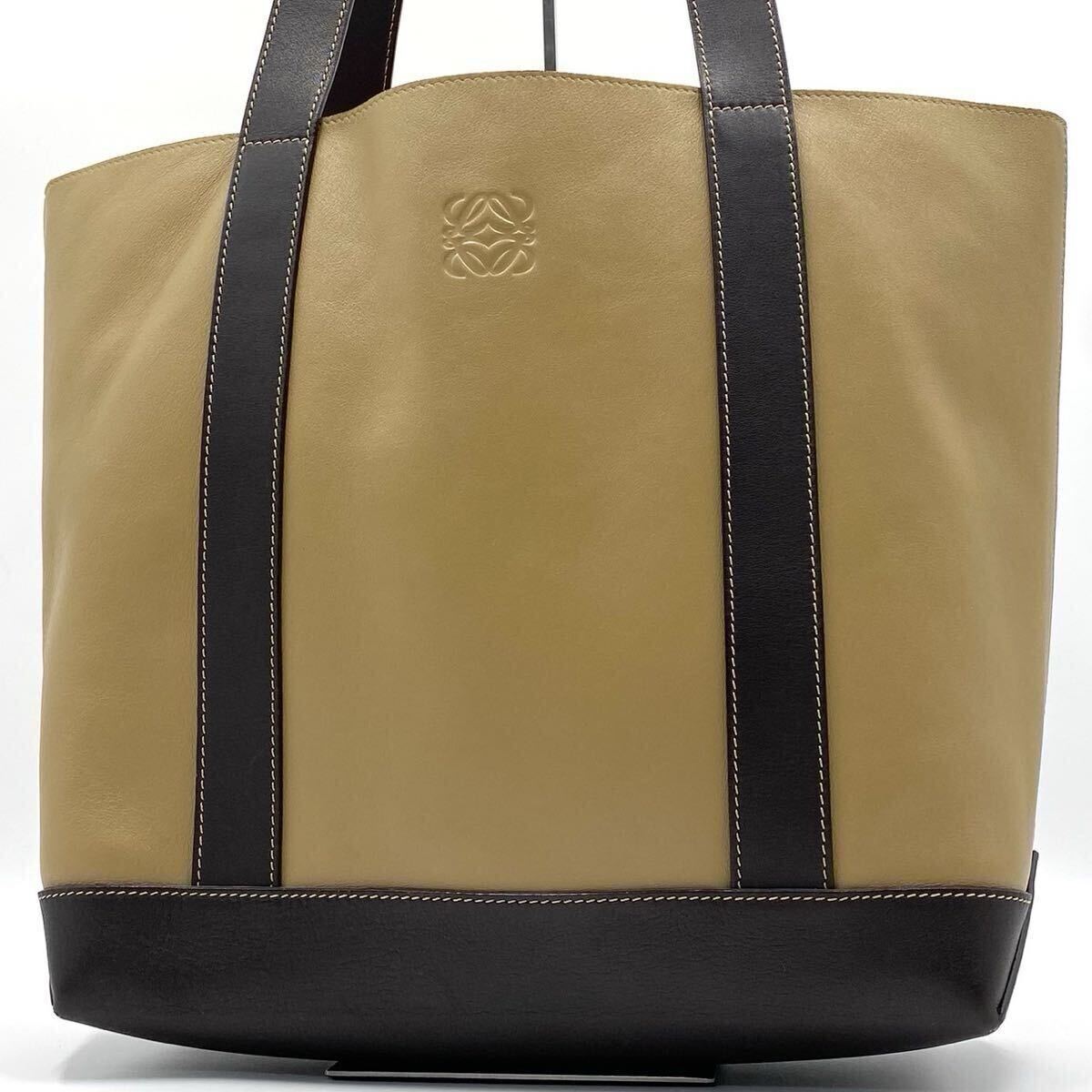 > 1円【美品】ロエベ LOEWE アナグラム メンズ ビジネス トートバッグ レザー ロゴ型押し 本革 A4 肩掛け ショルダー 大容量