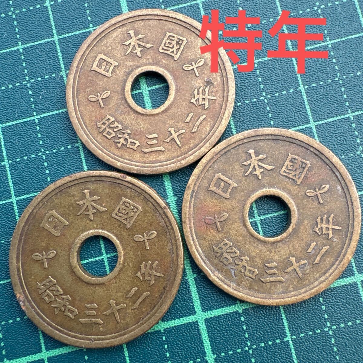 - 昭和三十二年 5円硬貨 3枚セット 楷書体 フデ五 古銭 特年