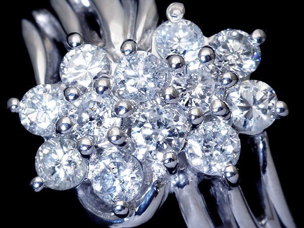 - 1円~【ジュエリー極】超豪華ダブルフラワーデザイン輝く!上質天然ダイヤモンド0.74ct 高級Pt900リング w6251ilil【送料無料】