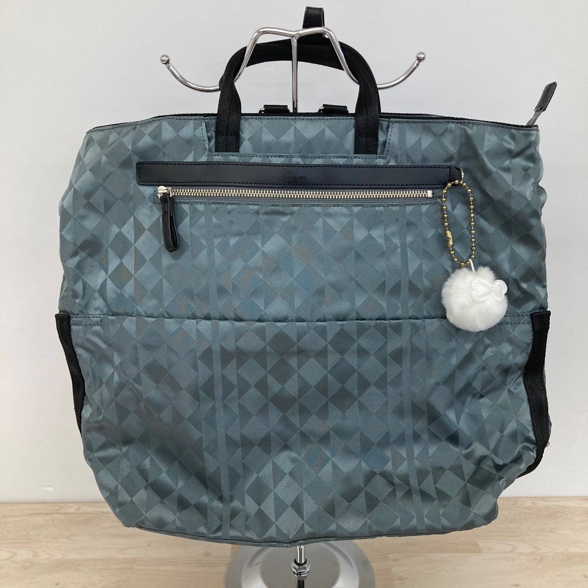 > 美品 Kanana project/カナナプロジェクト 2way リュックサック/トートバッグ グリーン系 総柄 ファーチャーム付き レディース[OX02356]