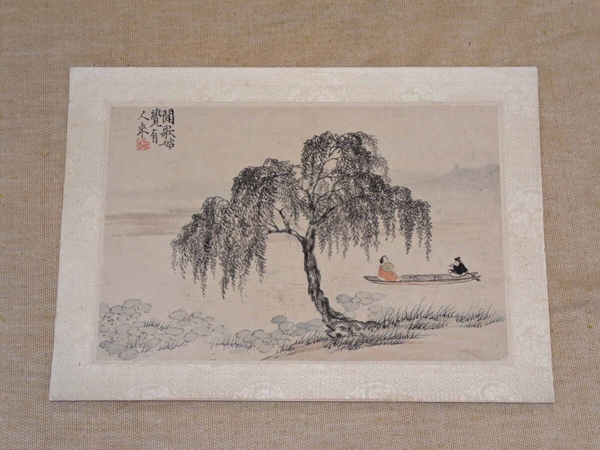 - 【真作】 呉滔 風景画 聞歌始覺有人來 美人 柳 肉筆 中国画 書畫 浙江省 石門 水墨画 呉伯滔 上海 呉昌碩 呉穀祥 三呉 絵画