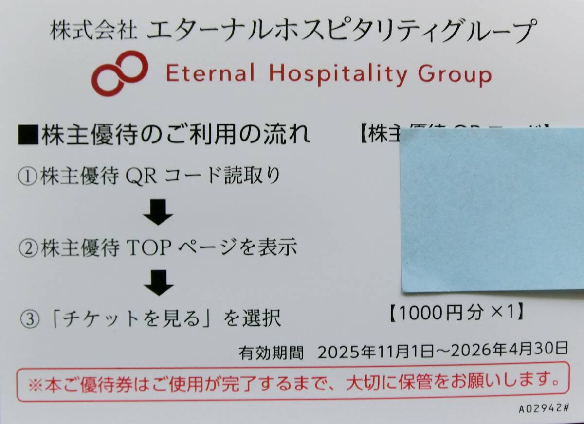 - 送料込☆鳥貴族 株主優待1000円分 エターナルホスピタリティ2026年4月30日までです。