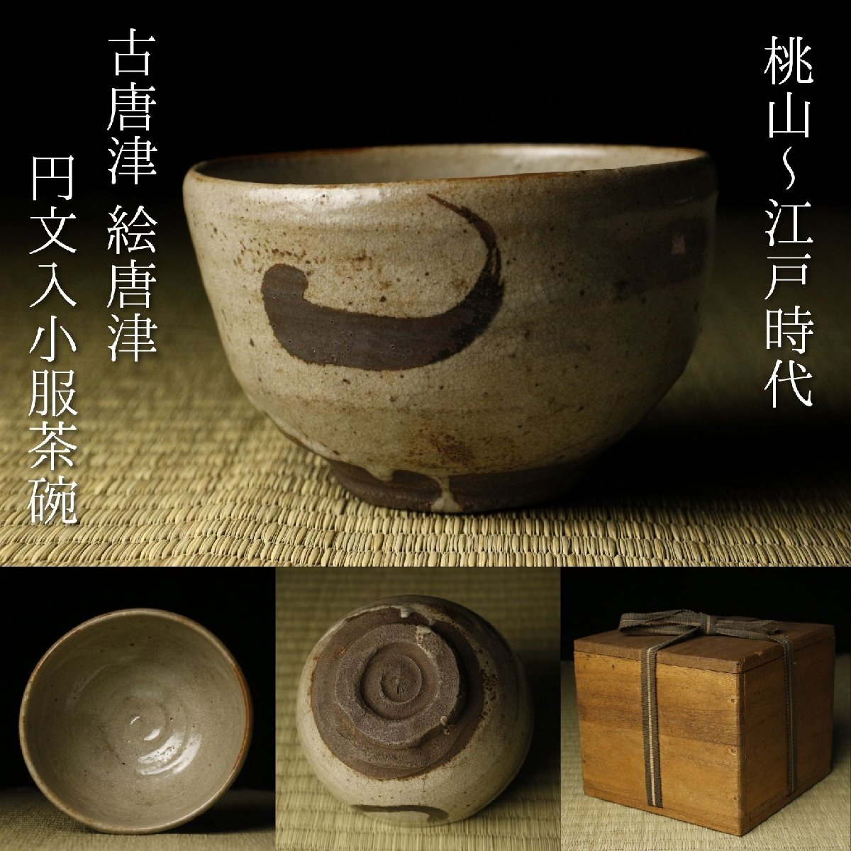 > 【LIG】桃山~江戸時代 古唐津 絵唐津 円文入小服茶碗 箱付 巴高台 九州陶磁器 2603.346
