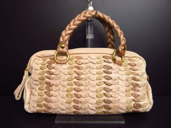 > $ 美品 $ 激レア!■ miumiu ■ ミュウミュウ ■ コード編み ラム革 ■ 2WAY ハンドバッグ ■ ピンクベージュ系 ■ ゆうパック:送料無料