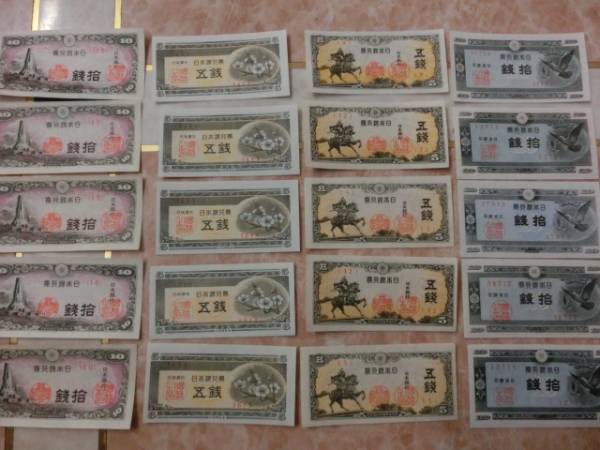 - ★ 日本銀行券 ハト10銭・八紘10銭・梅5銭・楠公5銭 20枚 ★ No.809