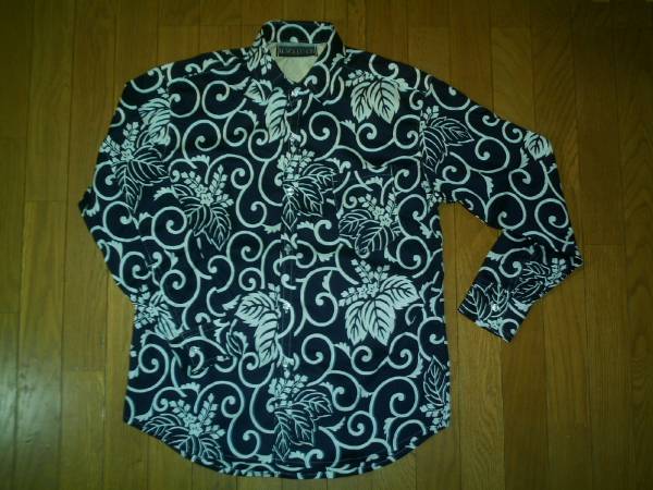 - ☆手作り☆ 唐草模様長袖シャツ 紺 L 新品 送無料あり