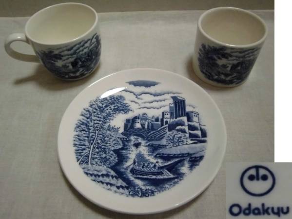 > ★小田急 Odakyu 風景画 カップ プレート 湯呑み?3点セット 中皿 マグカップ 茶器 コーヒーカップ 湯み茶碗 陶器 レトロ★