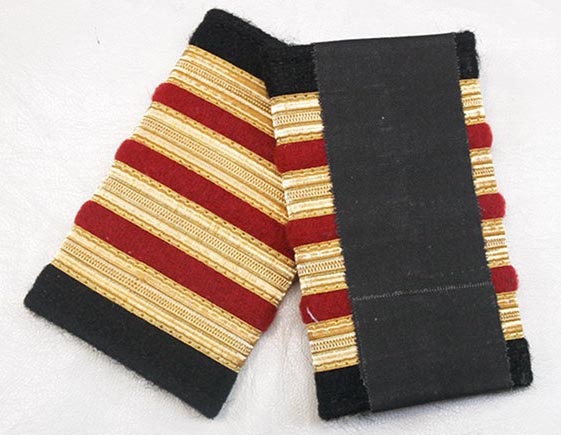 - ▲筒型(ループ型)肩章▲黒フェルトx金線4本x赤線3本▲新品▲