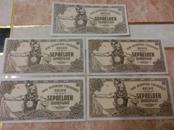 - ★ 大東亜戦争軍票 蘭印方面 (現地刷)10ルピア 極美品 5枚 ★ No.408
