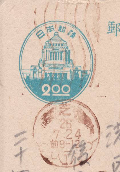 - t2476★唐草機械印/芝26.7.30他/葉書