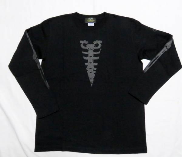 - ボーン骨スカル骸骨TシャツTCM(鎖骨有りV)no4.ロン黒グレイM