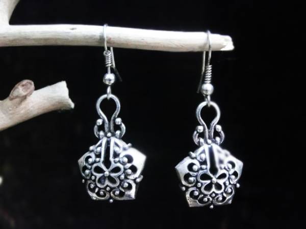 - ☆新品☆カンボジアシルバー 職人立体細工 民族ピアス①