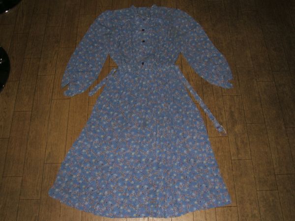 - 昭和レトロ★日本製★お嬢様チュニック,ワンピース 薄い紺×葉枝