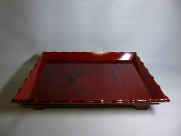 - 旧家から 朱塗 長方足付盆 「蘭香風流春来」