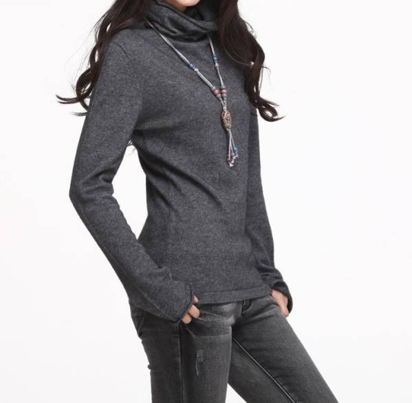 - 着心地の良いカシミヤ混・レディースタートルネックセーターL灰