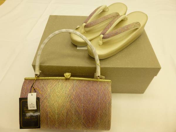 - 新品未使用★沙織製・草履バックセット★L寸・組み紐地です