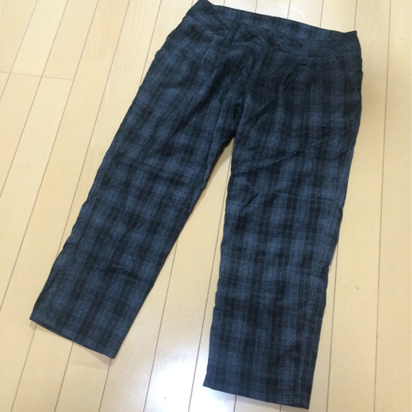 - グレンチェック 薄手コーデュロイ風 半端丈パンツ W64 ブラック系